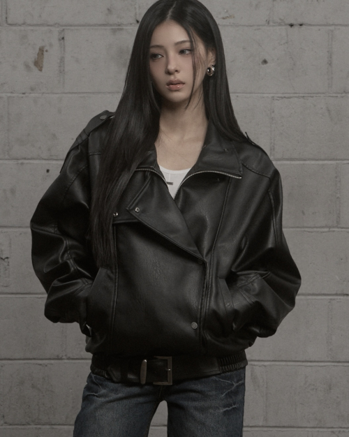 - 오버핏 실루엣 레더 자켓