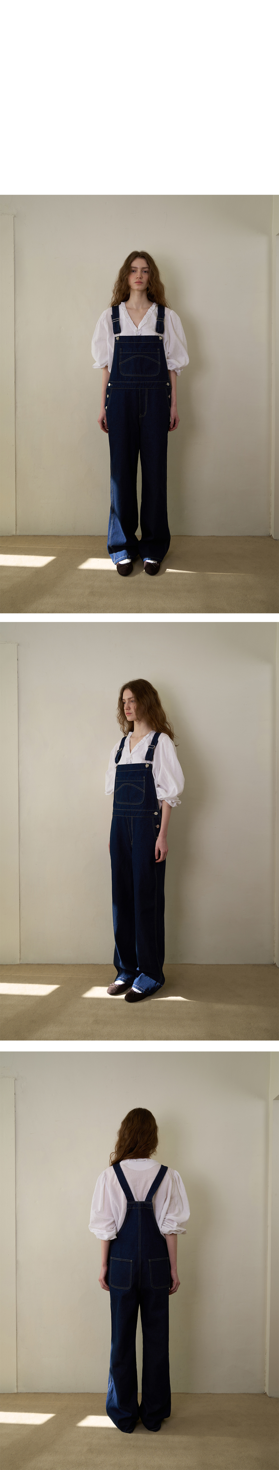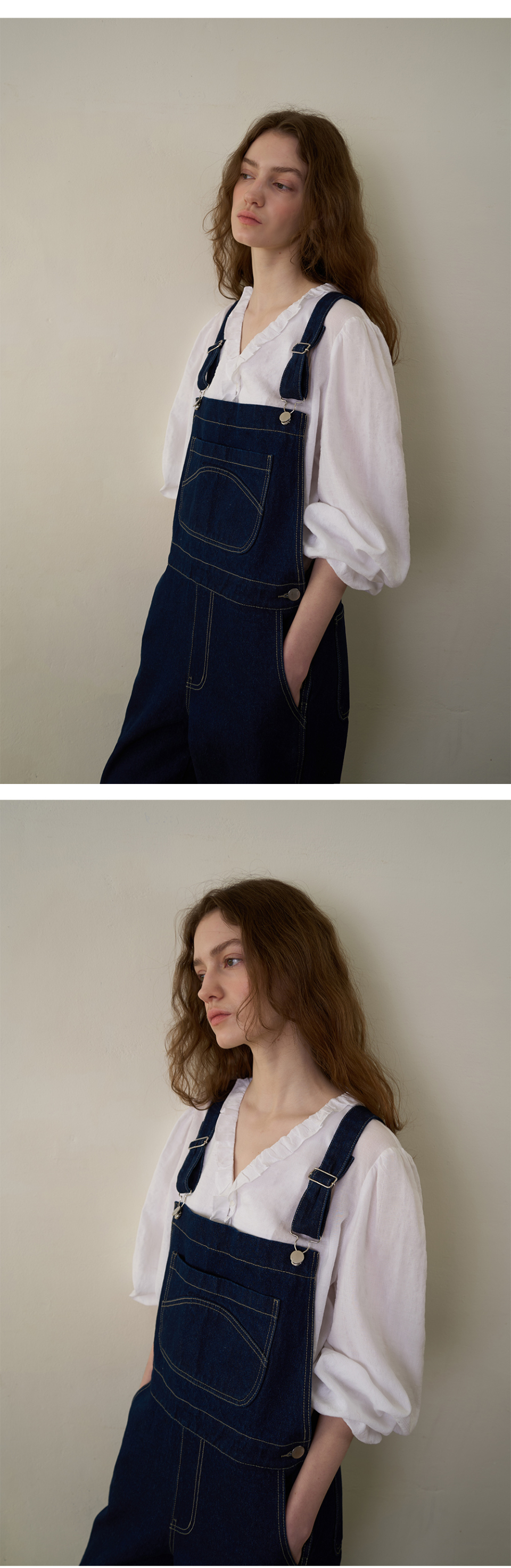 과하지 않은 스티치와 포켓 디테일로 오버롤 특유의 워크 무드는 살리면서도 데일리 룩에 자연스럽게 어우러지도록 완성했습니다.
