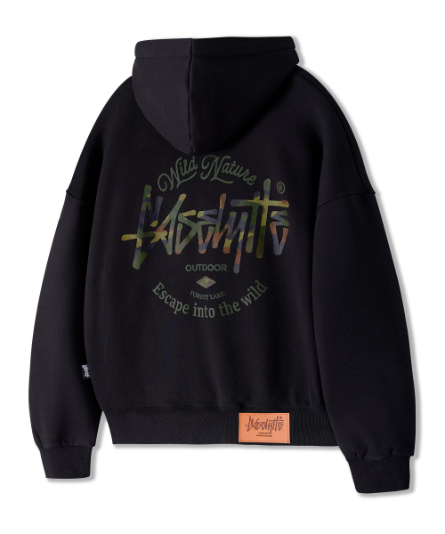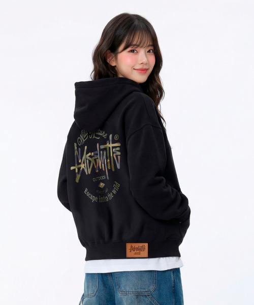 OG 카모 오버핏 크롭 후드티 블랙 YHT-406