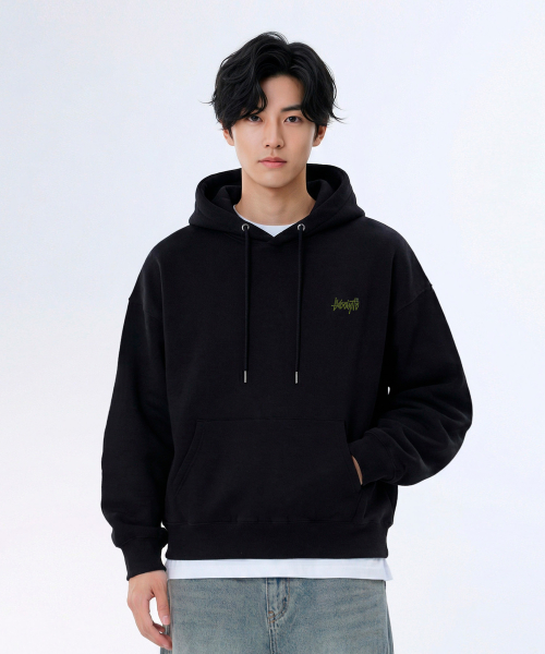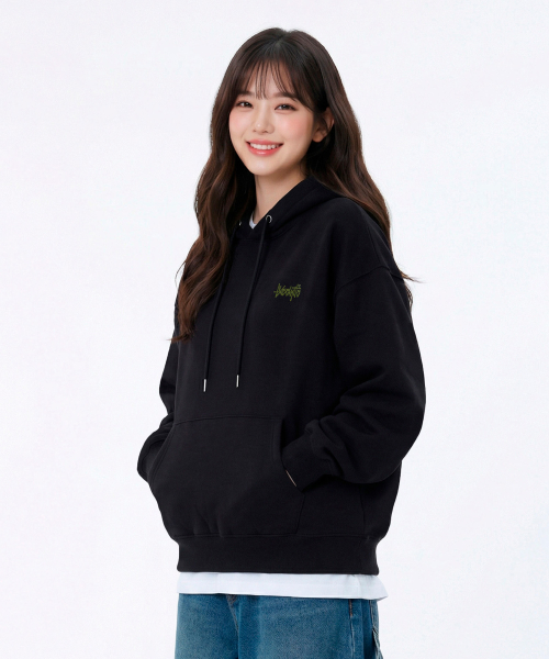 OG 에센셜 오버핏 크롭 후드집업 블랙 YHZ-202
