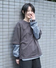 스트라이프 레이어드 긴팔티 세트 - 차콜/블루