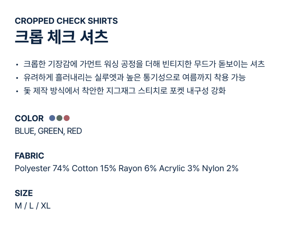 크롭 체크 셔츠(3colors) NST5426