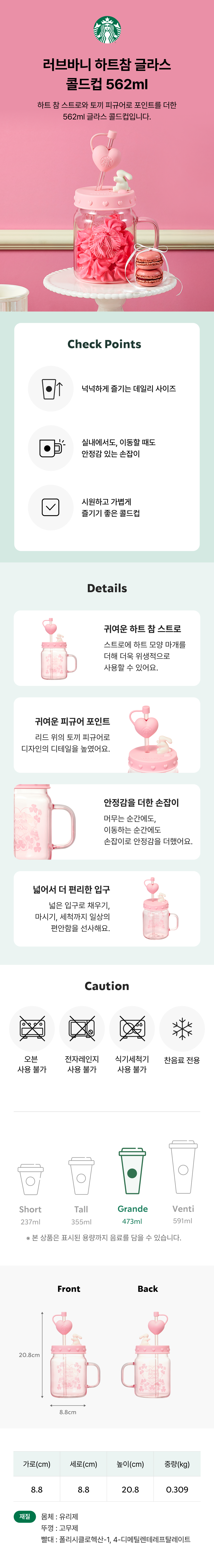 러브바니 하트참 글라스 콜드컵 562ml +에코텀블러음료쿠폰(카톡발송)