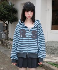 Patch Stripe Hood Zip-Up [Sky Blue]