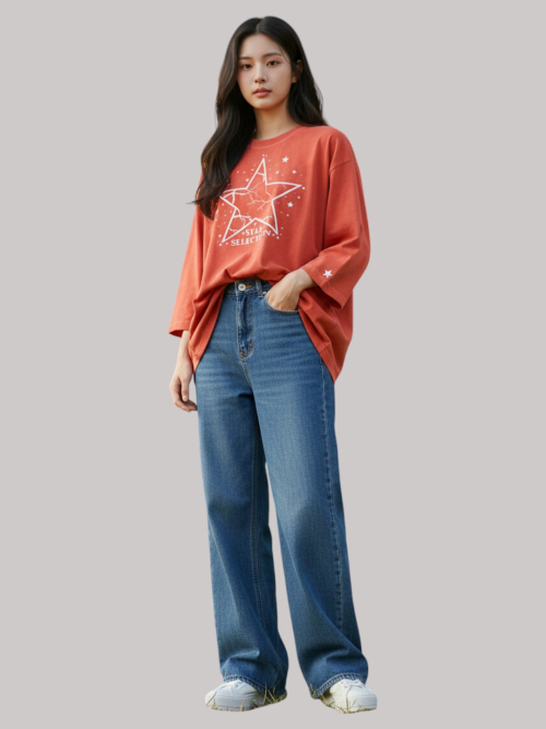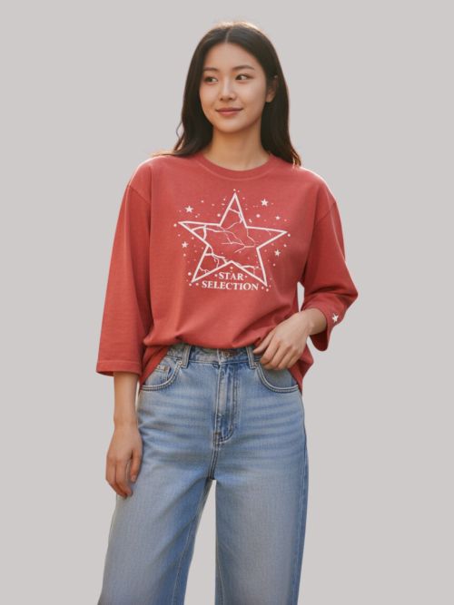 스타셀렉션 WITH STAR 7부 티셔츠(CORAL RED)