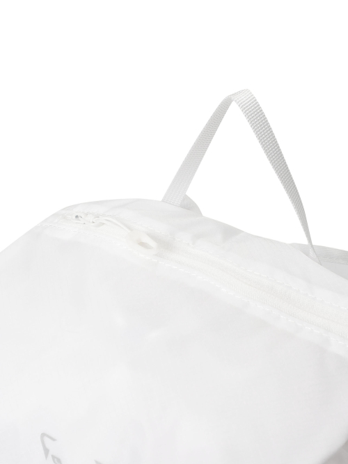 [스포티한 감성을 더한 디자인의 가볍고 실용적인 구성으로 야외활동에 적합한 백팩] - 립스탑 나일론 소재를 사용하여 은은한 조직감과 스포티한 무드 연출 - 물병 수납이 가능한 사이드포켓 - 가벼운 겉옷을 걸 수 있는 사이드 스트링 포인트 - 얇은 쿠셔닝 어깨끈과 체스트벨트로 편안한 착용감 제공 - 작은 소지품 수납이 가능한 후다 위 지퍼포켓 - 크기/무게: 가로23cm 세로40cm 폭16cm / 15L / 208g