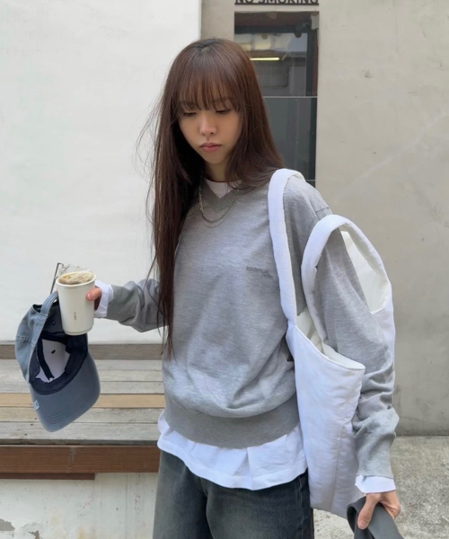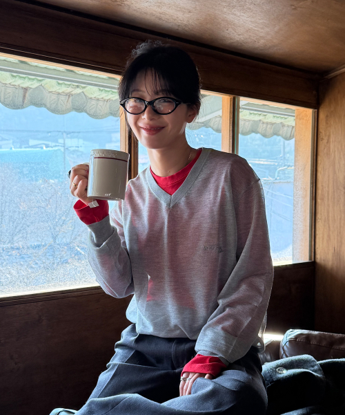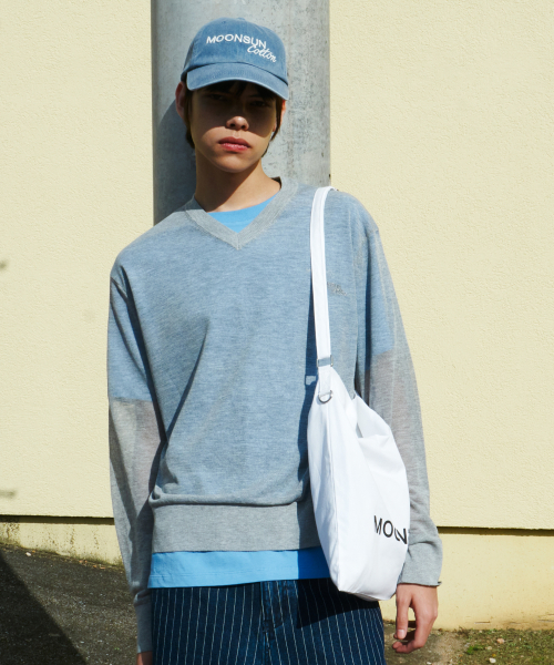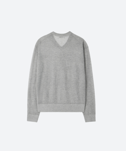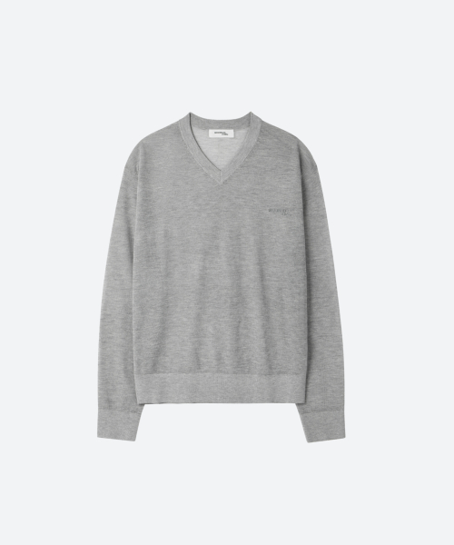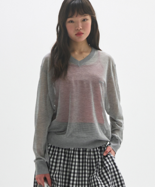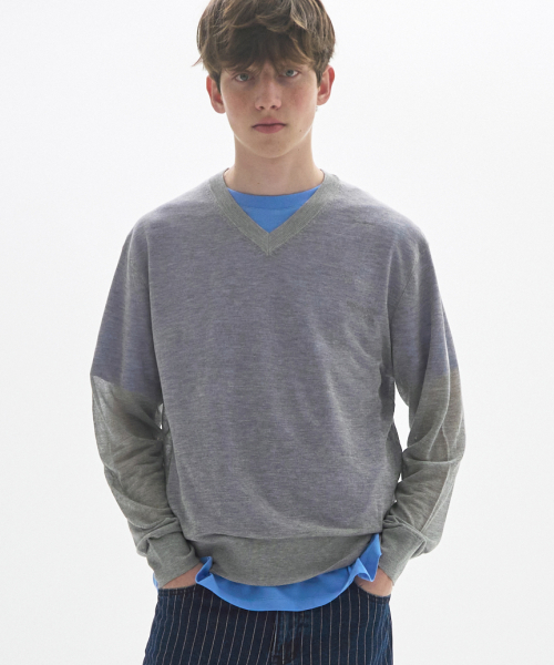 M.C UNISEX, Logo Sheer V Neck Knit / GRAY