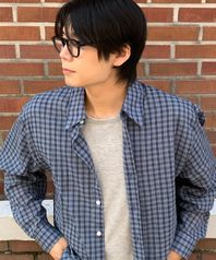 포인트 체크 포켓 배색 롤업 오버핏 와이드 코튼 팬츠 [차콜]