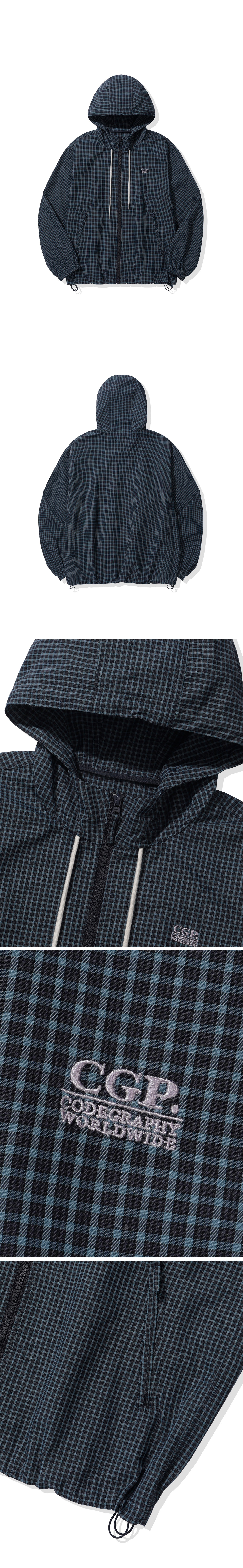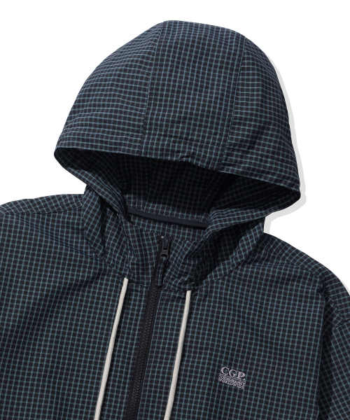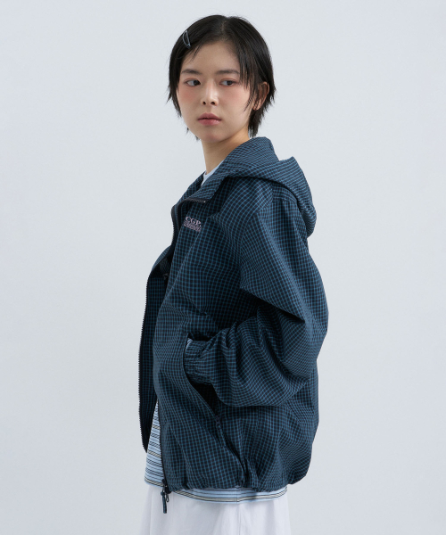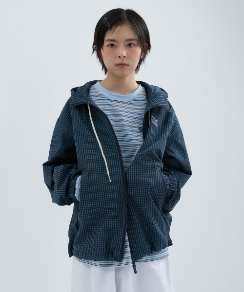 체크 후드 점퍼-다크 네이비