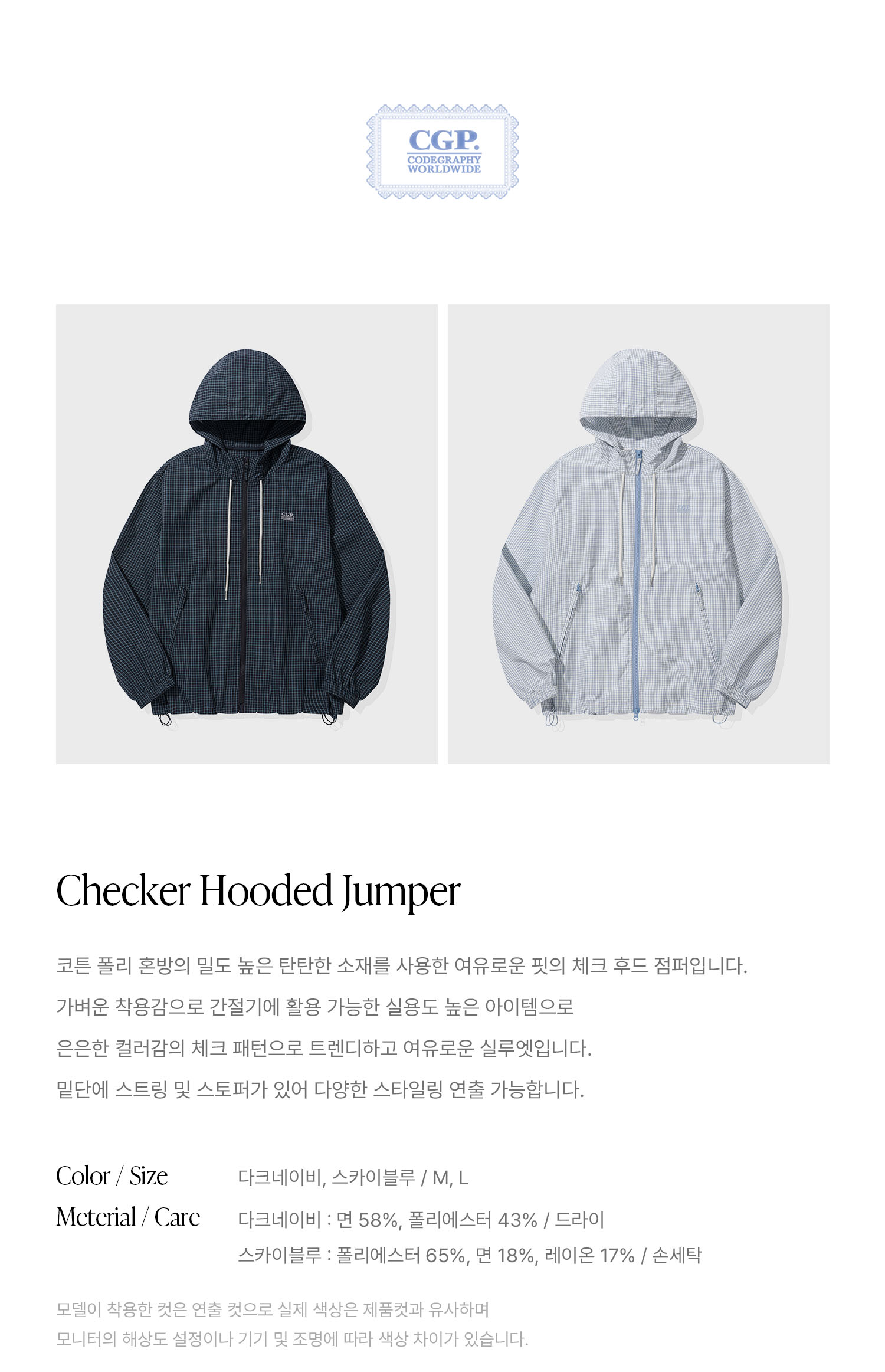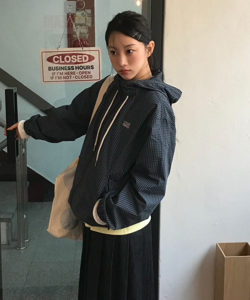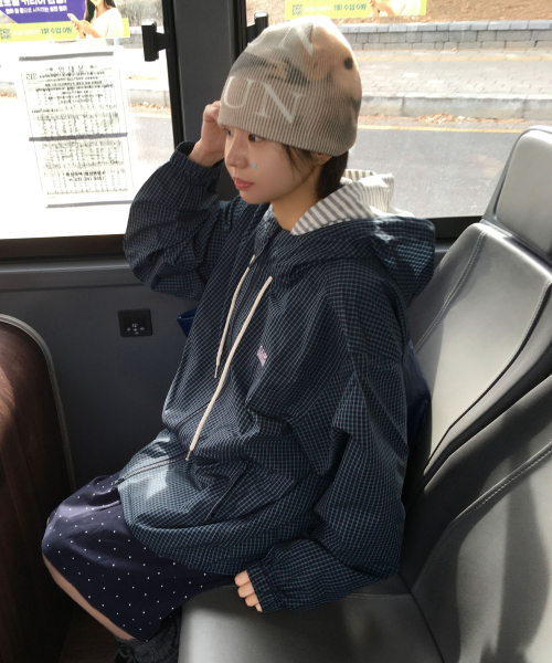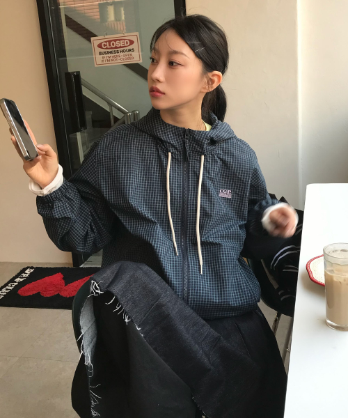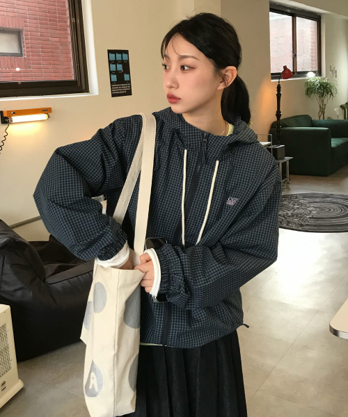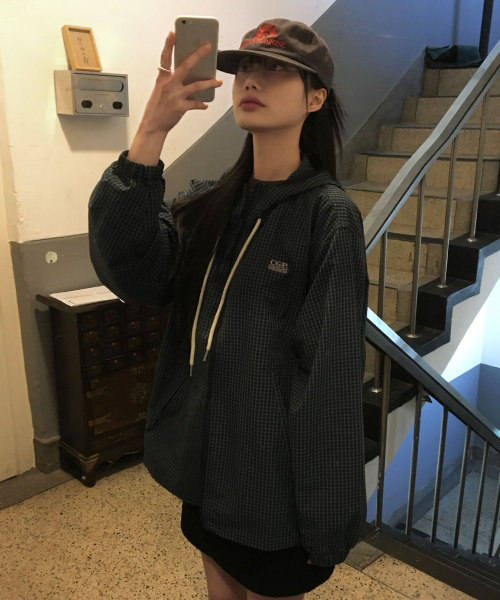 [서지수PICK] 후드 체크 배색 점퍼_MIWJJG422G