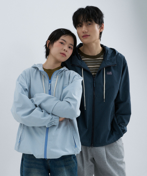 체크 후드 점퍼-스카이 블루
