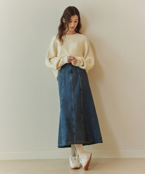 플레어 데님 스커트 / 인디고