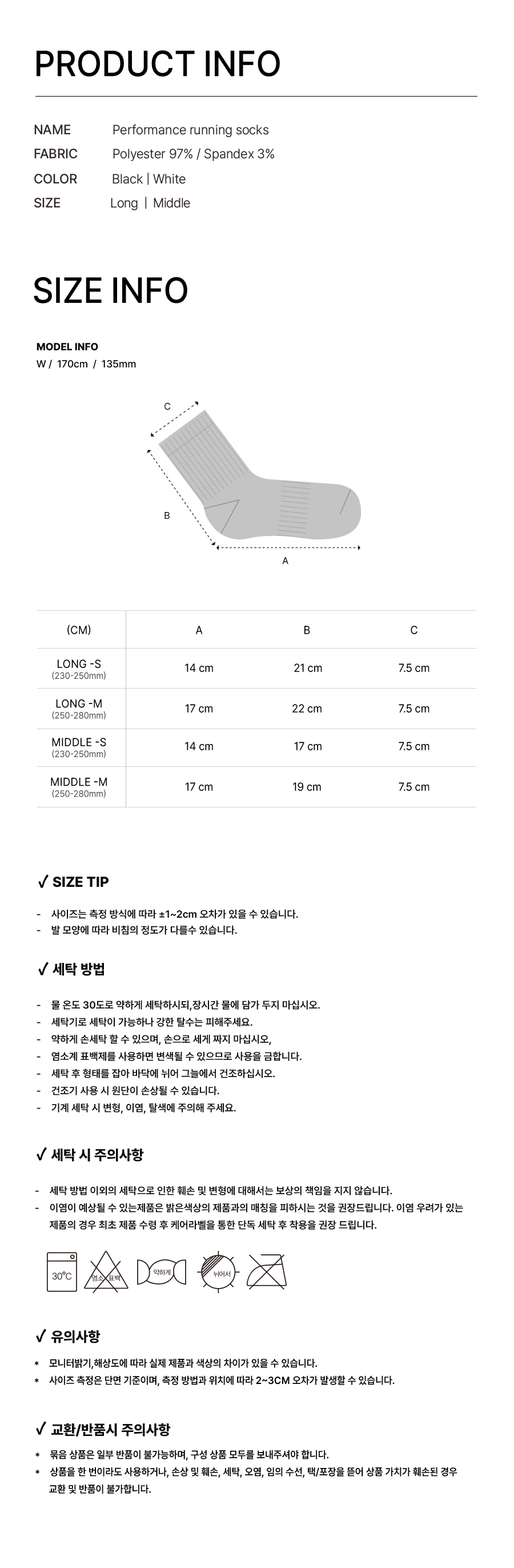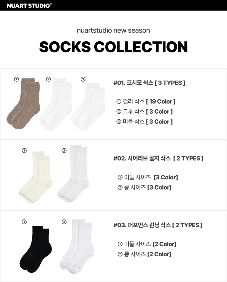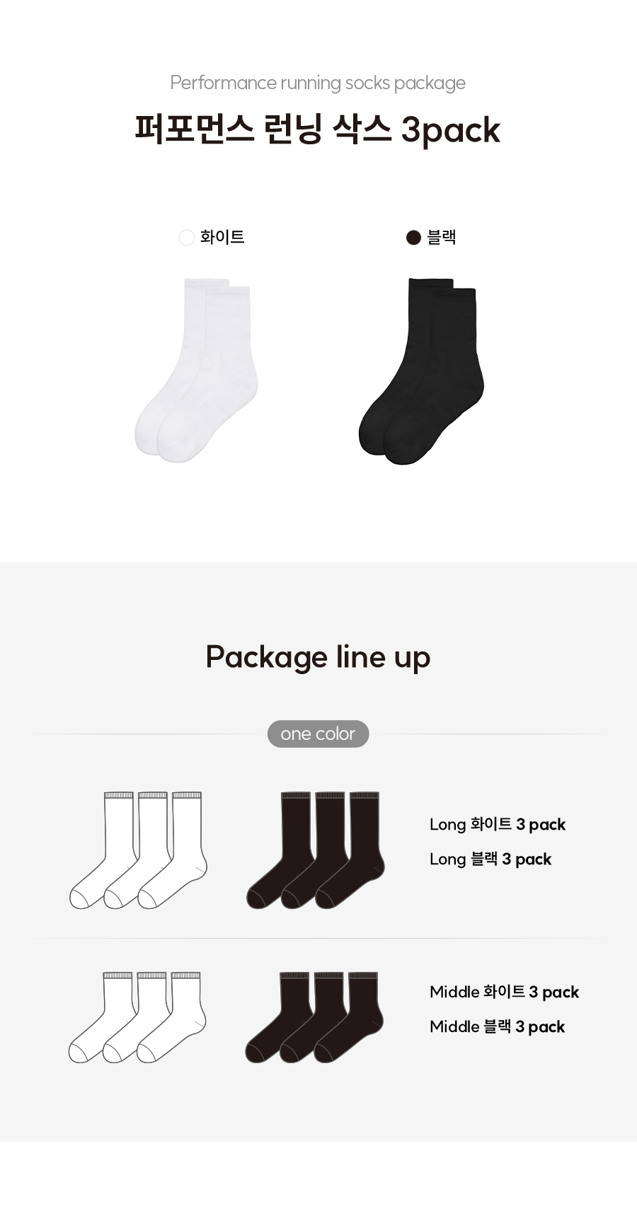 [3/6/9pack] 퍼포먼스 스포츠 삭스_블랙/화이트