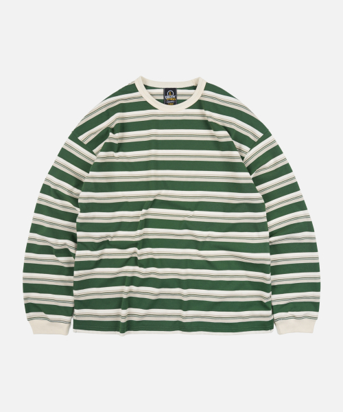 BLOCK STRIPE LONG SLEEVE TEE _ DARK GREEN