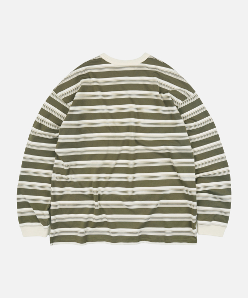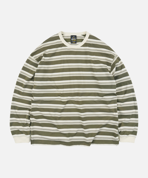 BLOCK STRIPE LONG SLEEVE TEE _ OLIVE