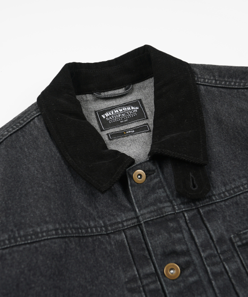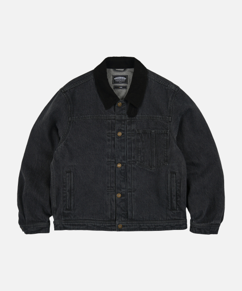 WASHED DENIM TRUCKER JACKET _ BLACK