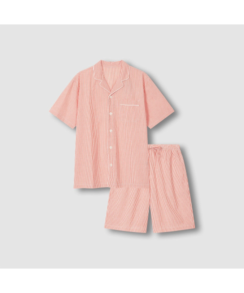 남 시어서커 5부 파자마 세트_다크 오렌지