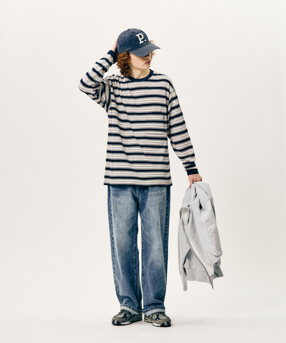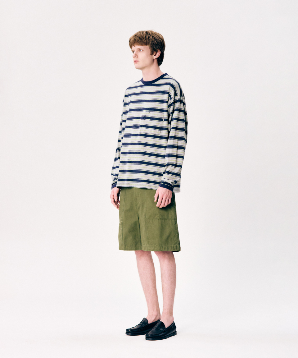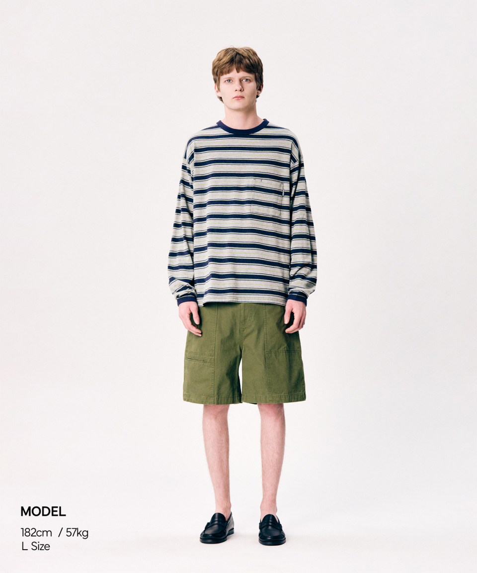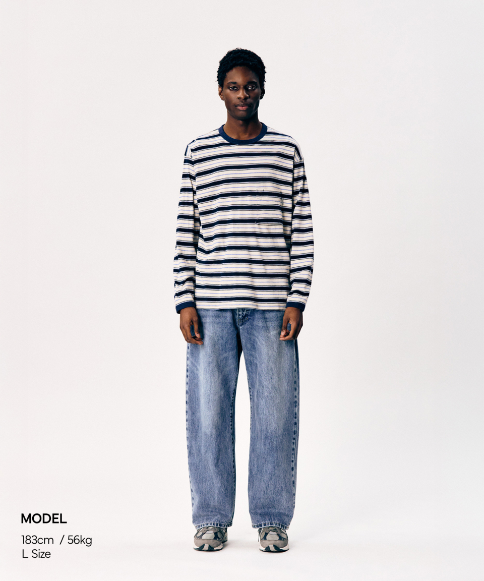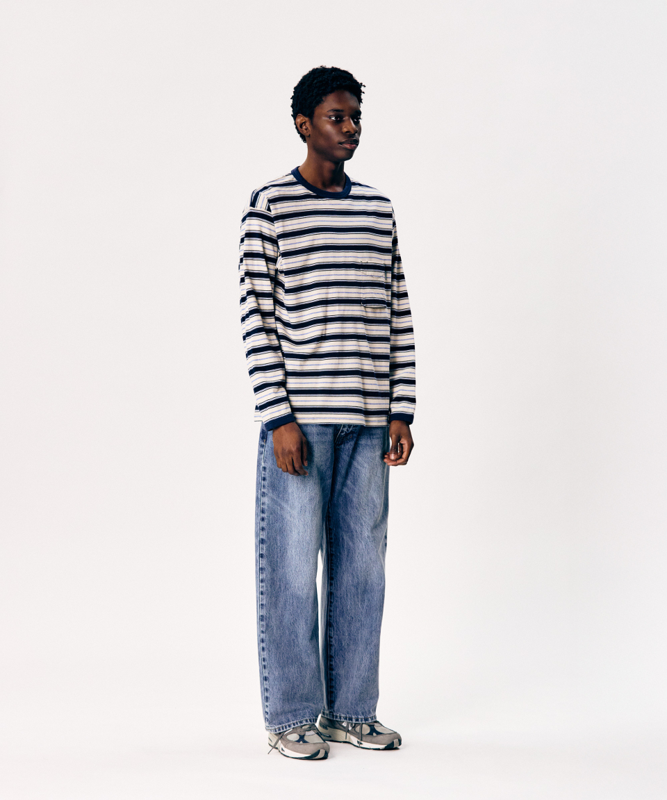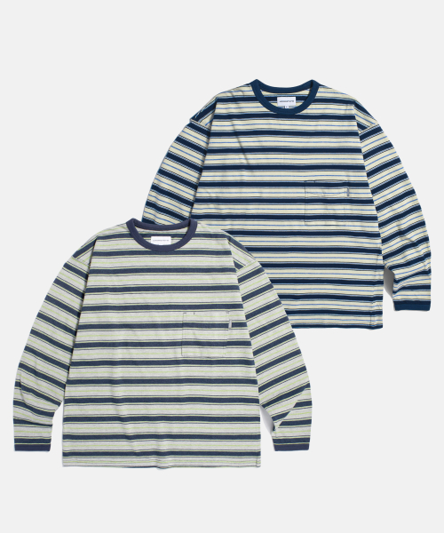 Multi Border L/S Tee Navy