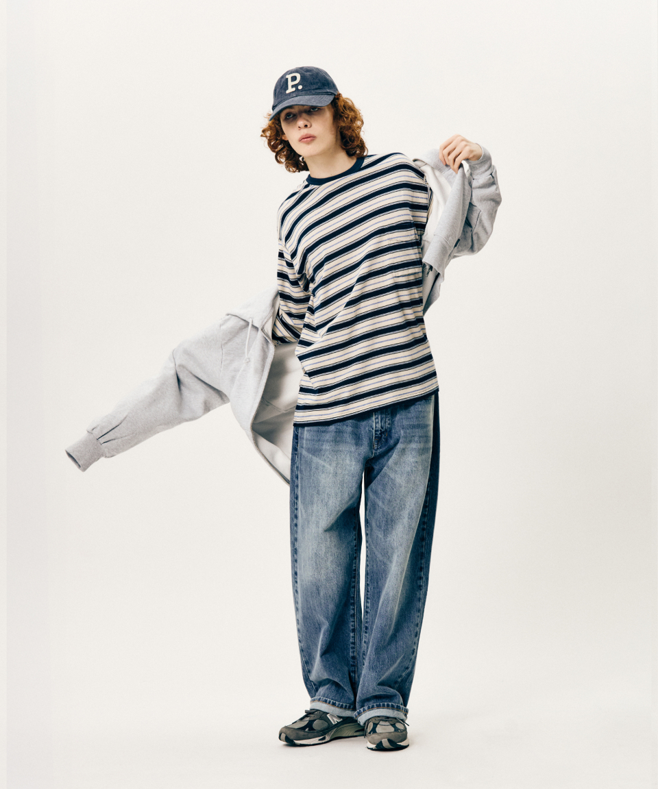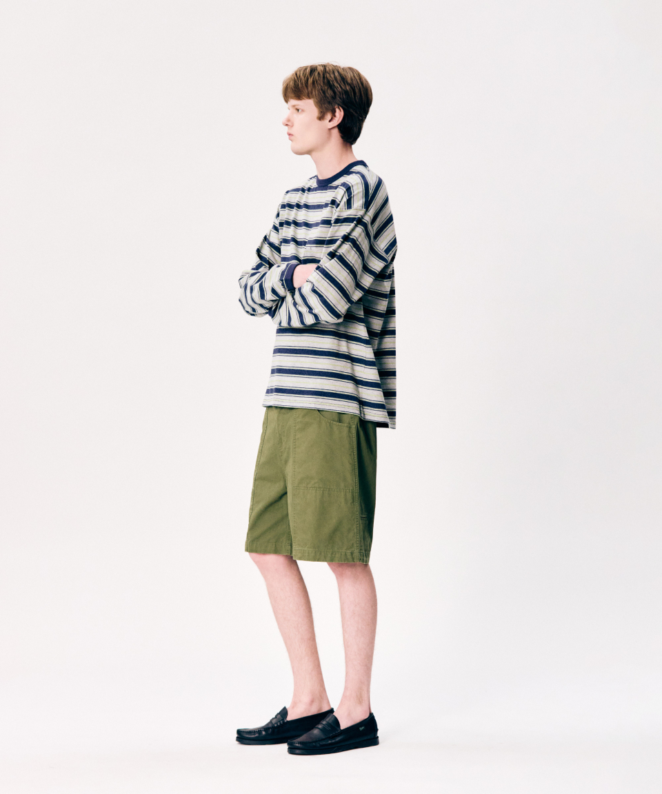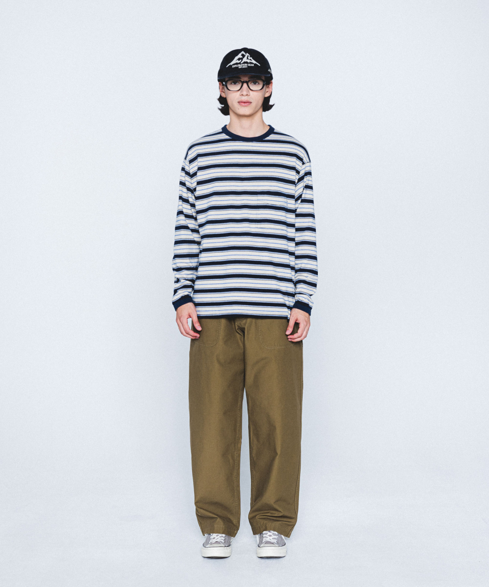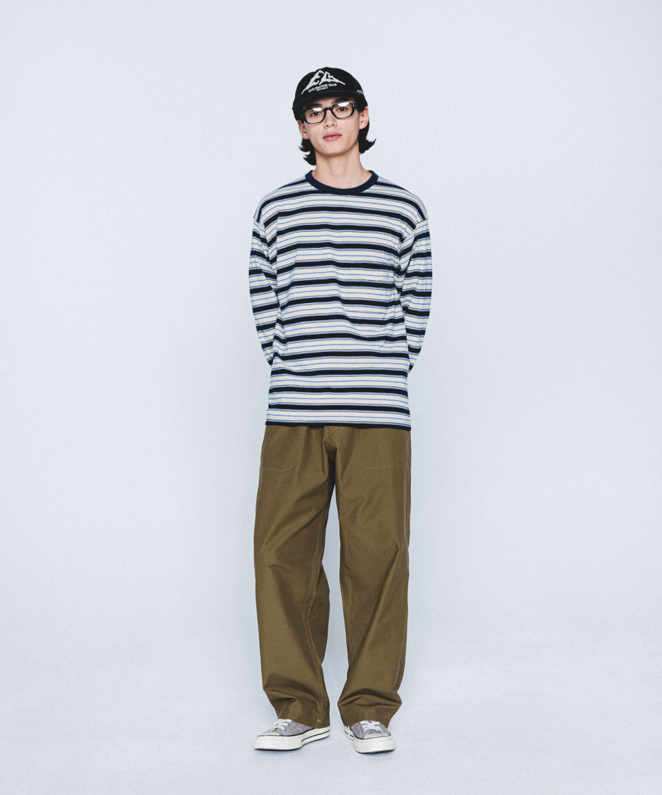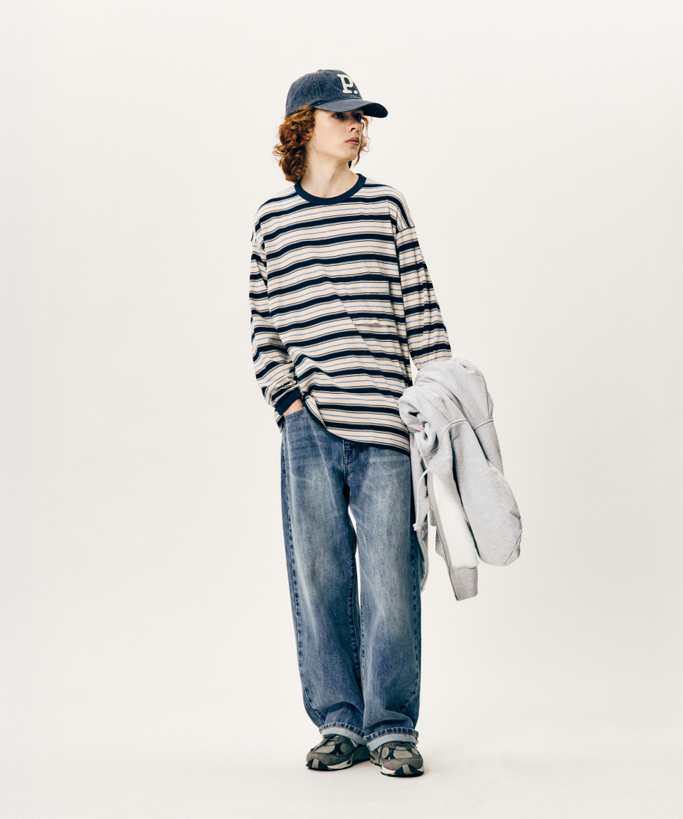 Multi Border L/S Tee Navy