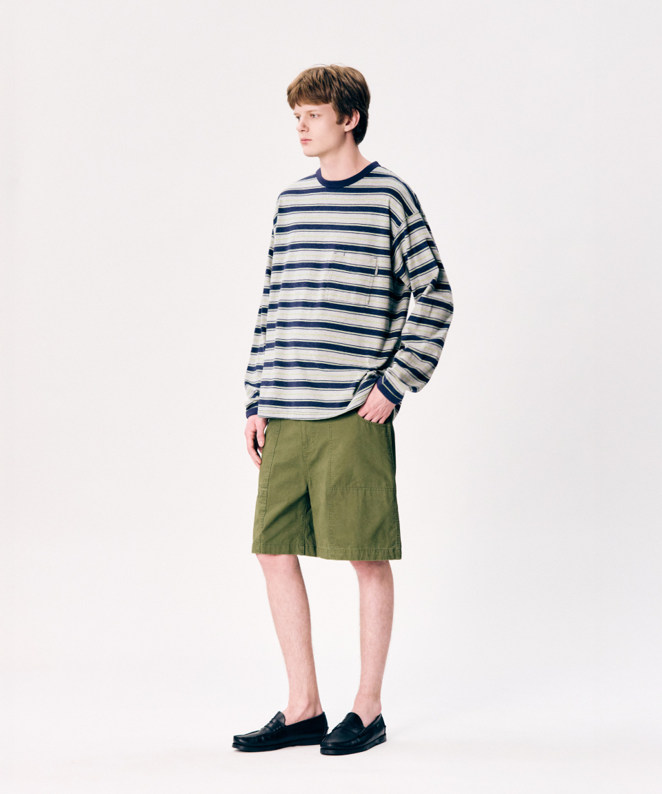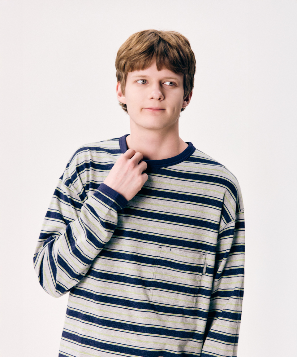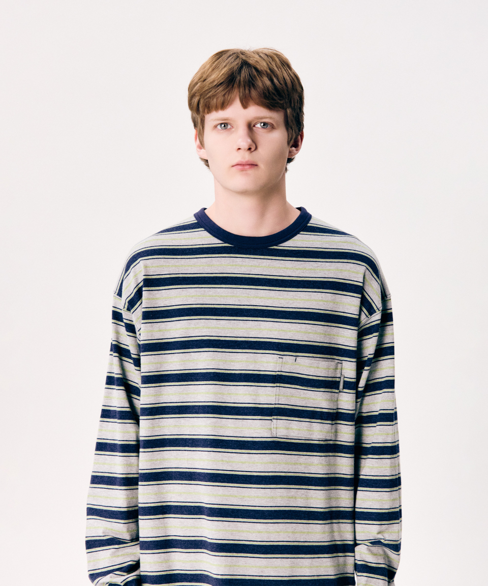 Multi Border L/S Tee Grey
