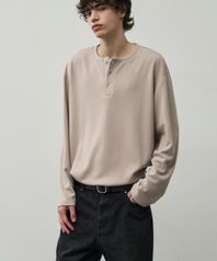 워셔블 레이어드 헨리넥 니트티셔츠 [크림베이지]