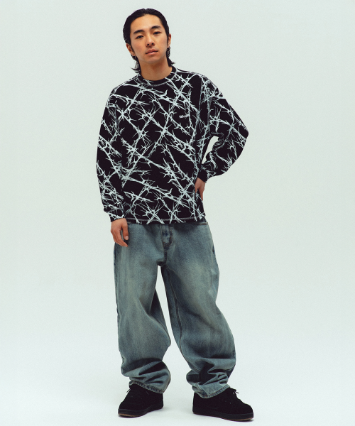 * 후면 포켓 디스트레스드 디테일 및 그래픽 프린트