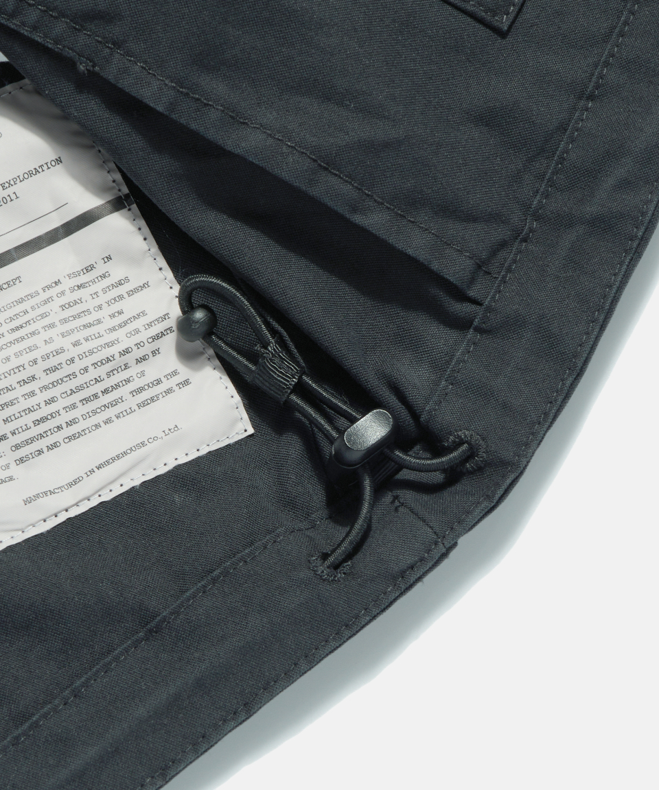 에스피오나지(ESPIONAGE)는 '밖을 보다' '숨겨져 있는 것을 발견한다'는 의미의 고대 프랑스어 ESPIRE에서 유래한 말로 지금은 타국의 비밀 정보를 수집하는 첩보 활동을 뜻하기도 합니다. 첩보 활동의 의미가 적진에서 은밀히 적들의 정보를 빼오는 것을 말하는 것처럼 에스피오나지가 만드는 아이템에는 숨겨져 있는 것을 찾아내는 과정을 포함하고 있습니다. 클래식, 밀리터리, 아웃도어 등 이미 만들어져 있는 의복을 베이스로 우리가 중요하게 생각하는 원단과 부자재, 기술, 핏 등의 요소들을 정확하게 탐구하고 수집해 조합, 재정의 혹은 재해석된 결과물을 만들고자 합니다. 사전적인 의미의 에스피오나지가 가지는 부정적인 첩보 활동의 이미지가 아닌 첩보 활동의 과정, 즉 본질에 대한 탐구와 조사 활동이라는 긍정적인 느낌을 전달하려 하며 수집된 정보를 하나의 작업물로 만들어내는 일련의 과정과 그렇게 완성한 에스피오나지의 아이템을 통해 다시 만드는 과정을 다시 유추하려는 생각들 모두 에스피오나지입니다.