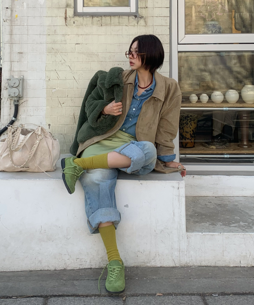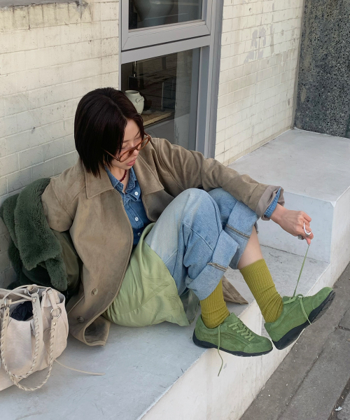soft color edit: 로마리 스웨이드 레이스업 스니커즈 블루 FLOTGA1W78