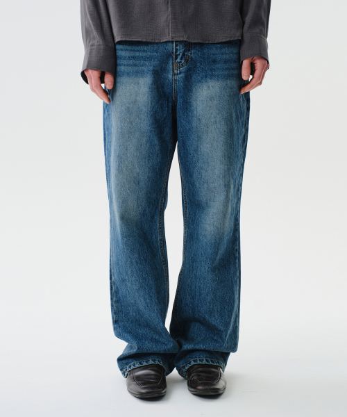 LOOSED STRAIGHT DEINM PANTS (WASHED BLUE)
