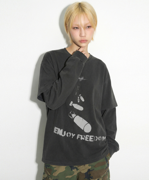 DTG 프리덤 피그먼트 레이어드 티셔츠 차콜