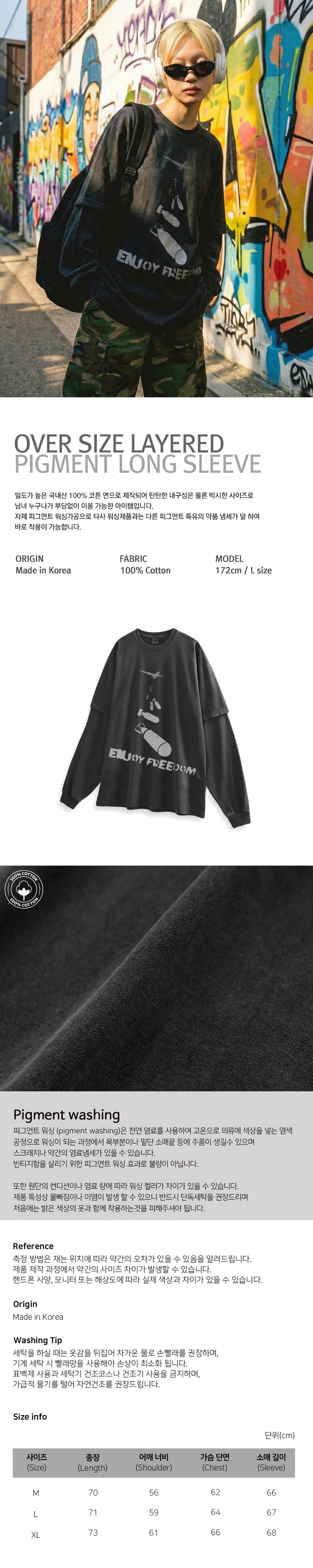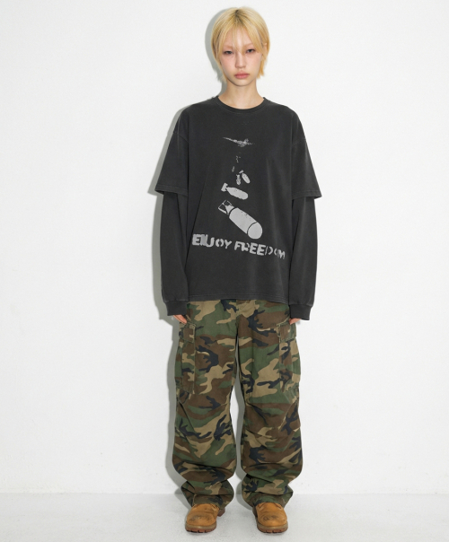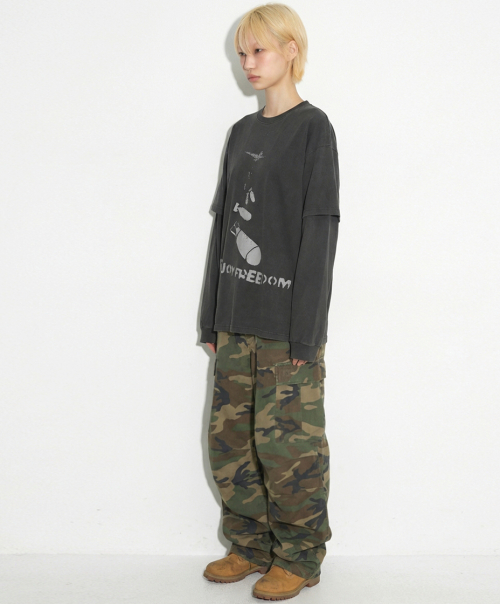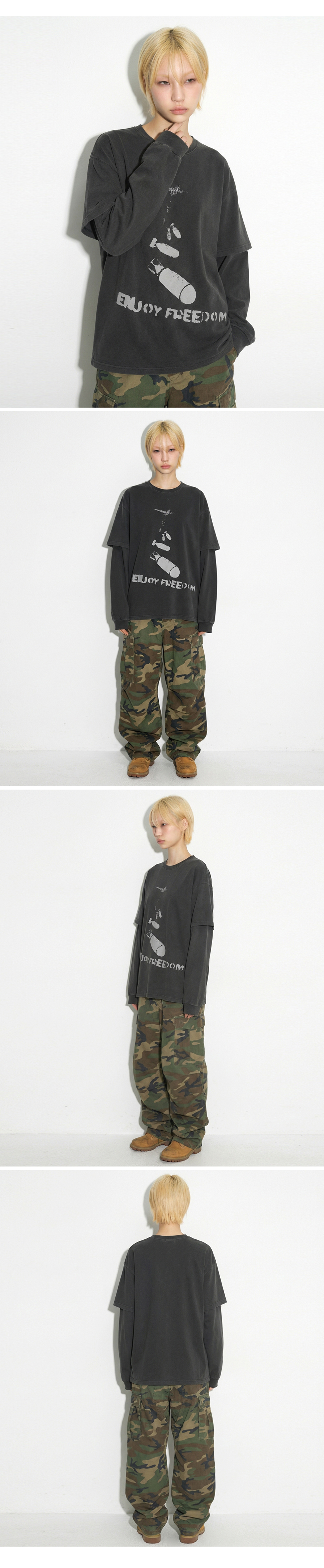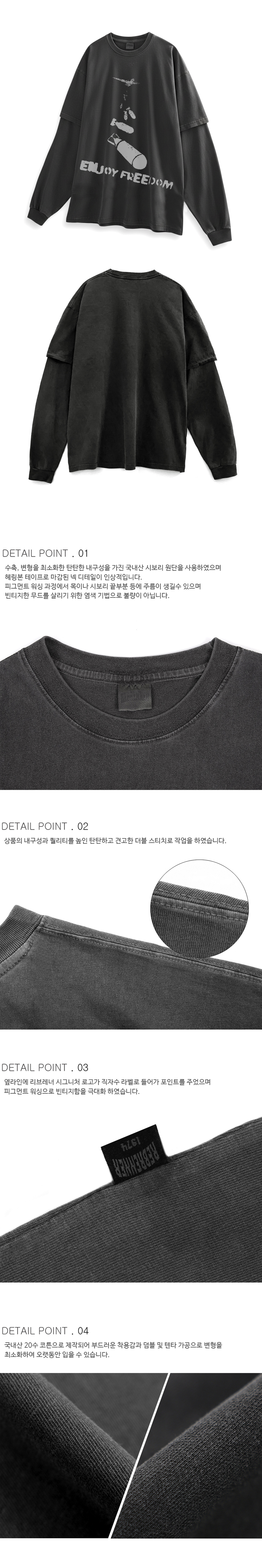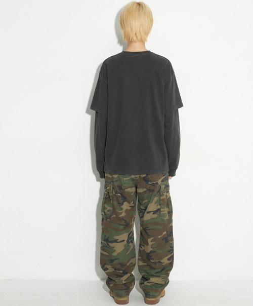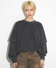 오버핏 피그먼트 레이어드 티셔츠 차콜