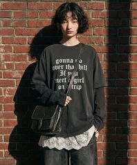 DTF 트립 피그먼트 레이어드 티셔츠 차콜