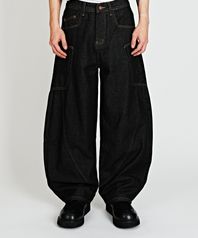 커브드 포켓 데님 와이드 팬츠(인디고 블랙)