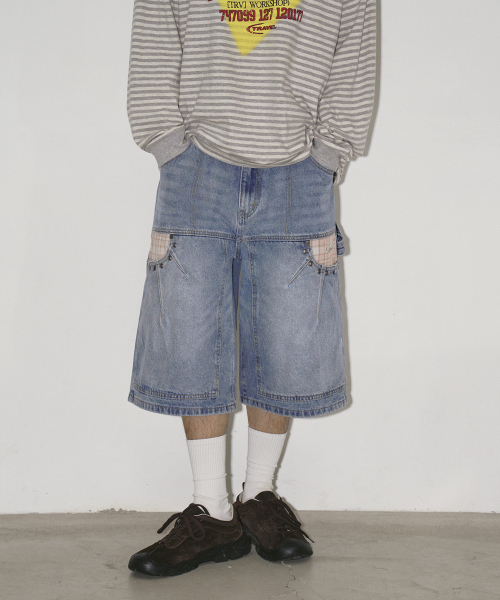 다트 포켓 데님 버뮤다 쇼츠 인디고