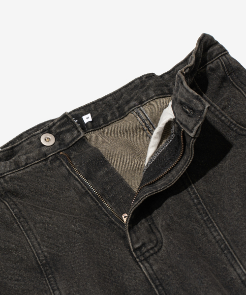 커브드 라인 워싱 데님 팬츠 (블랙)