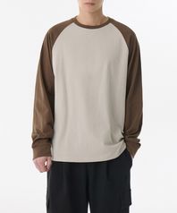 릴렉스드 립 커프스 래글런 긴소매 티셔츠 [머쉬룸/브라운]
