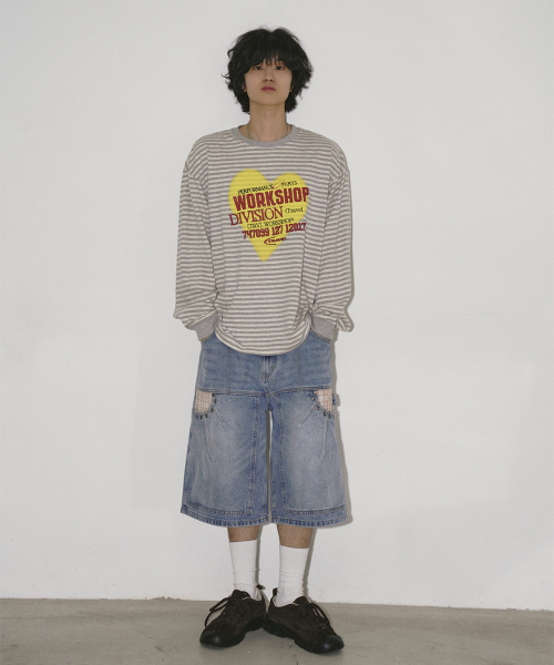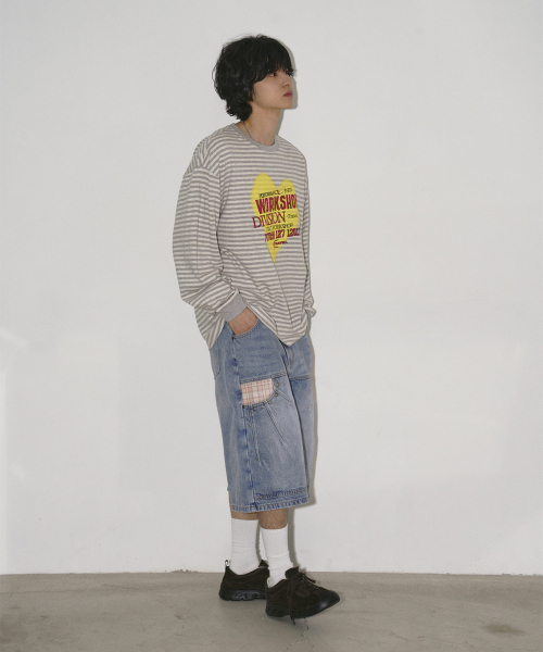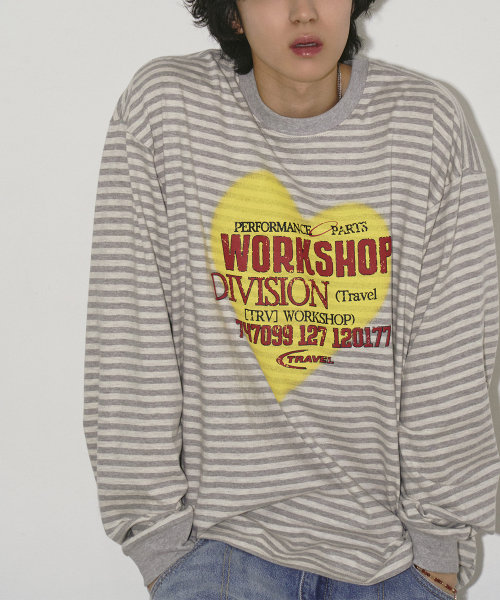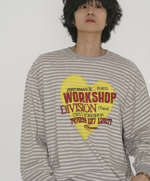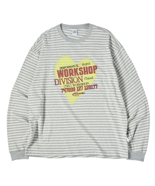 스프레이 하트 스트라이프 롱 슬리브 아이보리