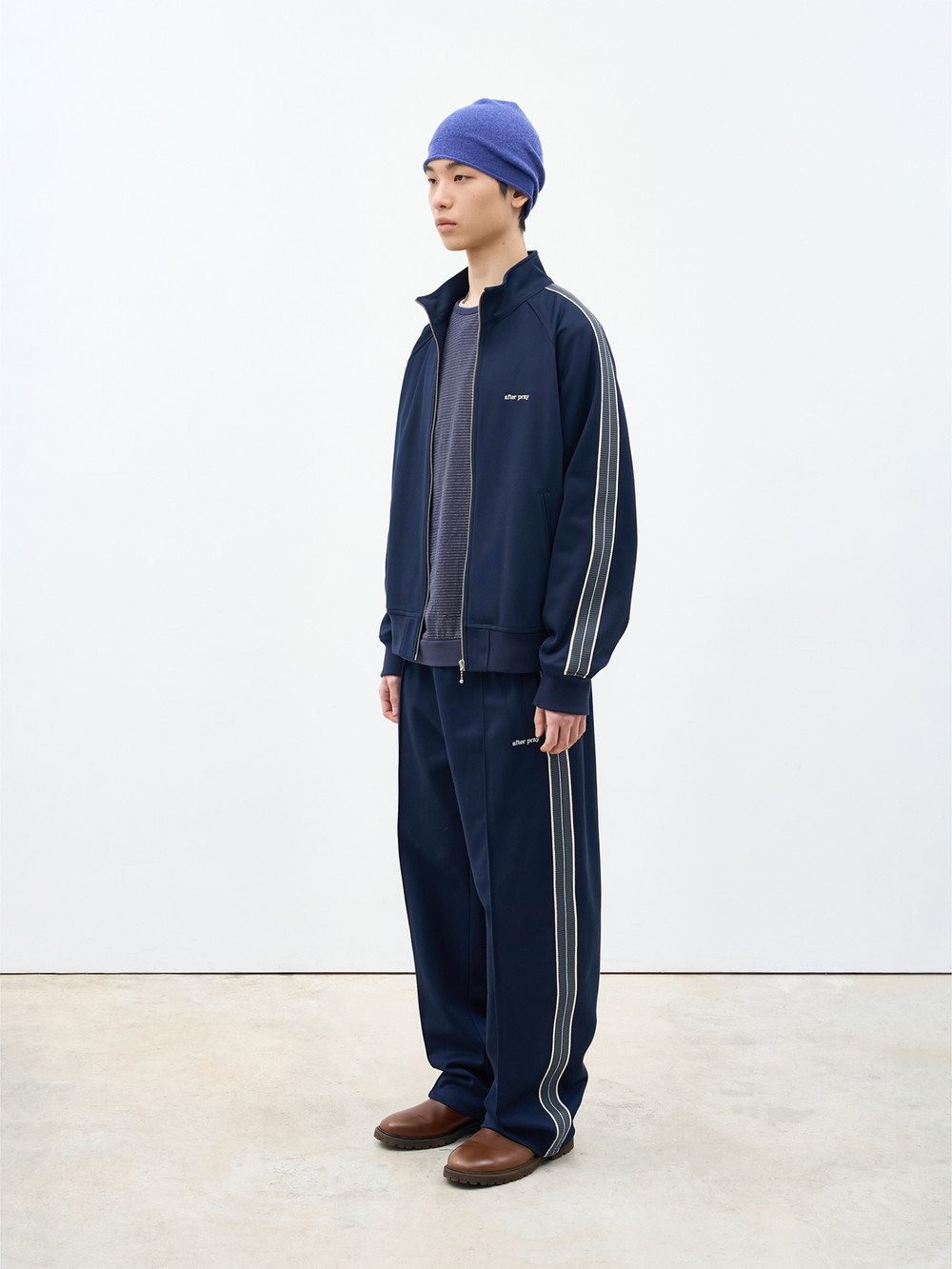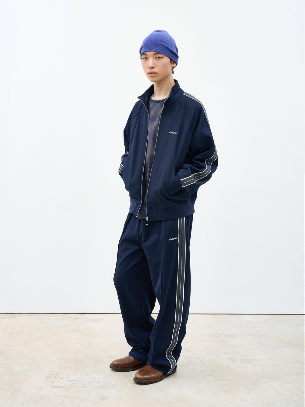 애프터프레이의 아카이브를 현대적인 감각으로 재해석한 자카드 트랙 집업. 봄과 여름 시즌에 최적화된 쾌적한 두께감의 프리미엄 코튼 저지 소재. 핀턱 스티치와 니트 엠보 파이핑 디테일로 완성한 독창적이고 유니크한 시각적 미학. 레귤러 실루엣과 유연한 소재가 만들어내는 조화롭고 정교한 밸런스. 간결한 디자인 속 미묘한 대비를 통해 브랜드의 정체성을 드러내는 시그니처 자수 디테일. 매칭되는 트랙 팬츠와 완벽한 조화를 이루며 감각적인 실루엣을 완성하는 셋업 아이템.