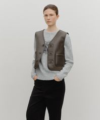 W FAUX LEATHER MUSTANG CROP VEST brown