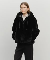 W HOODED FAUX FUR JACKET black