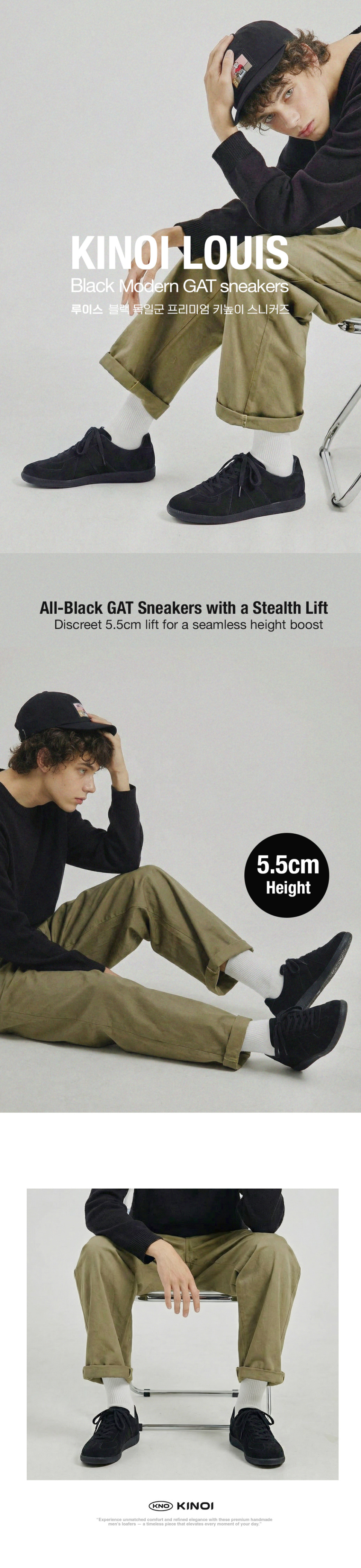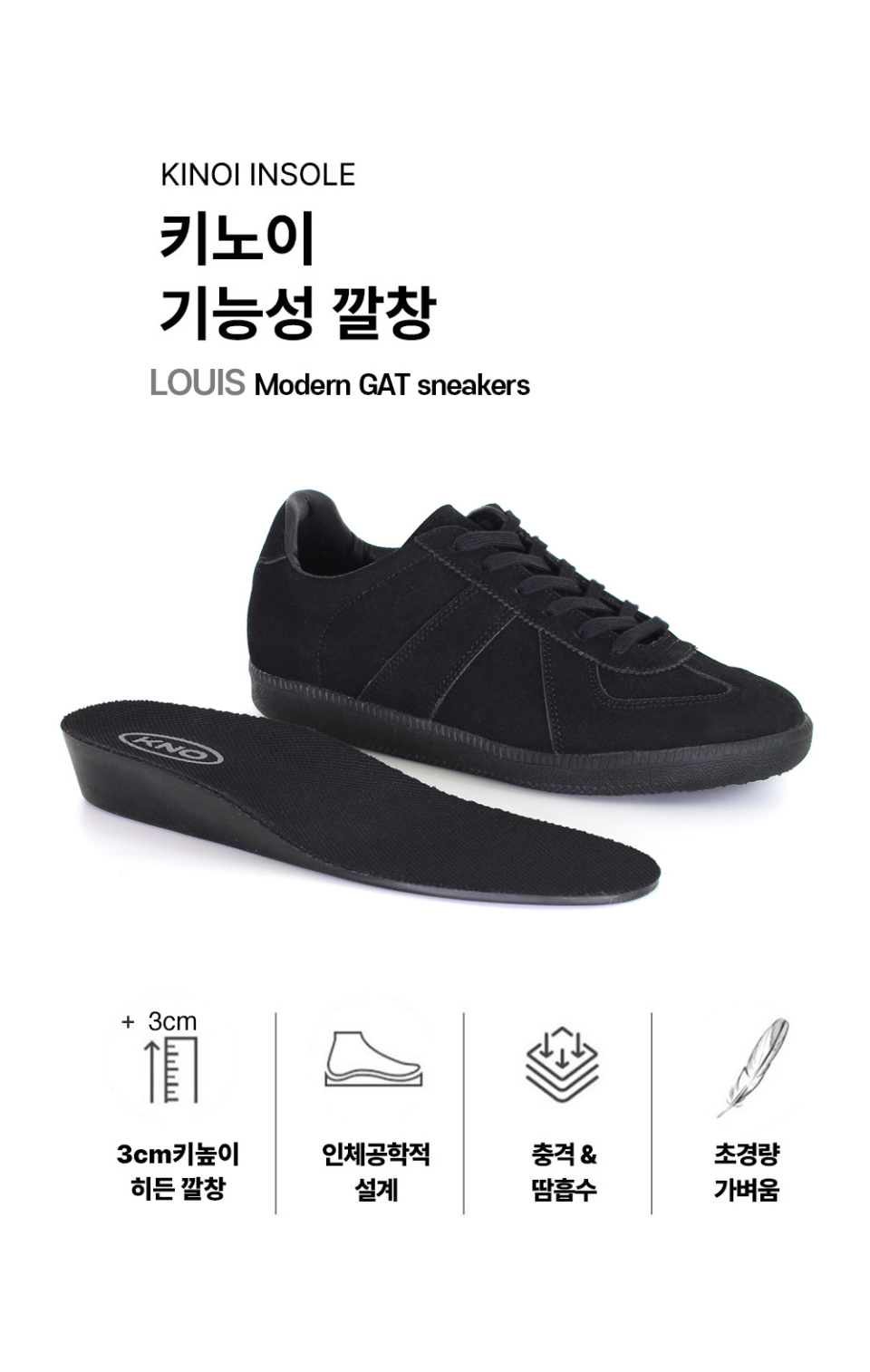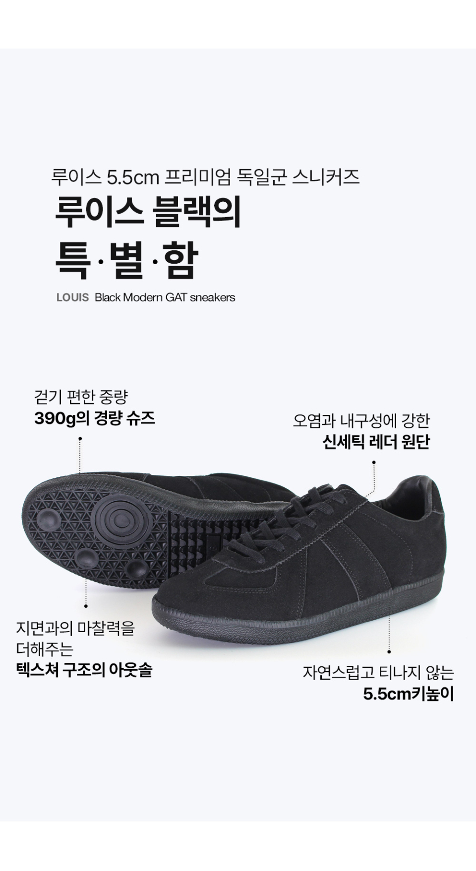 루이스 5.5cm 키높이 독일군 스니커즈 올블랙 [225~290mm]