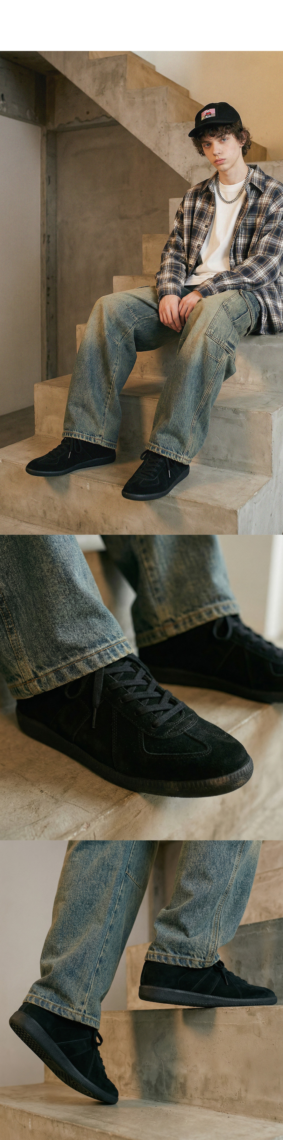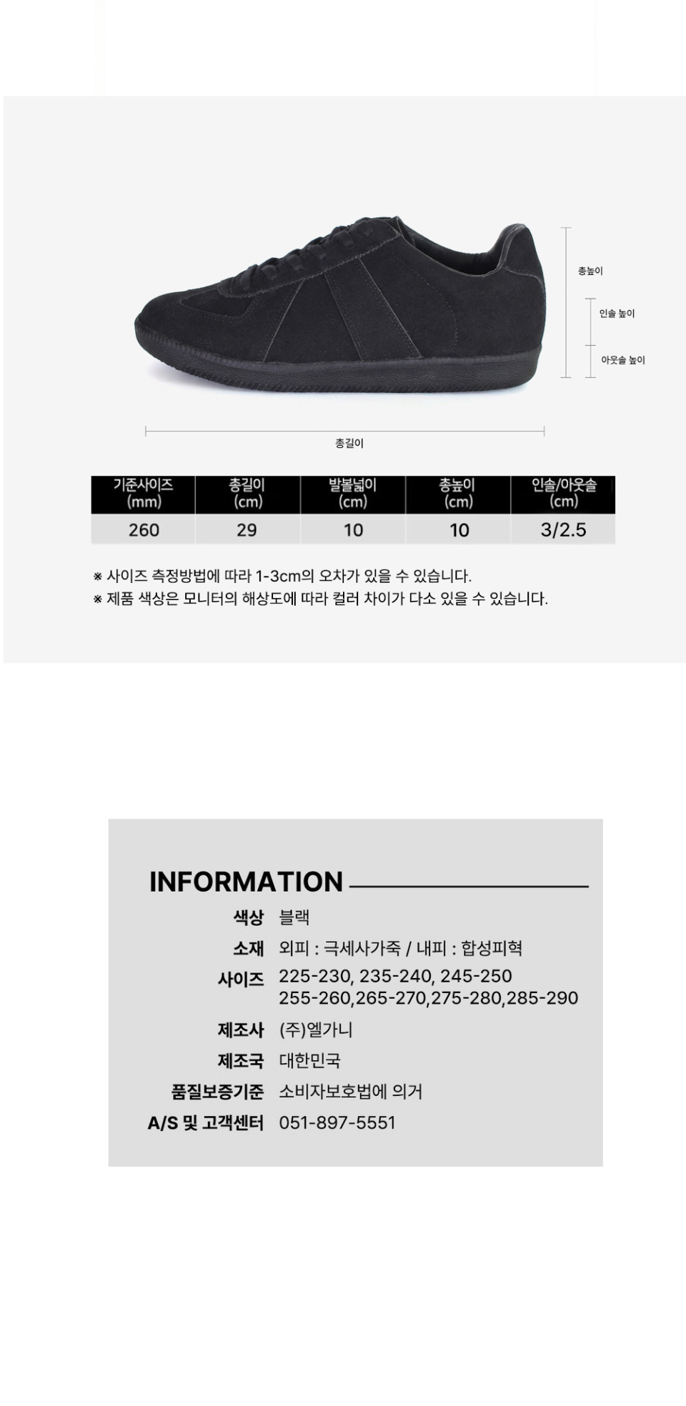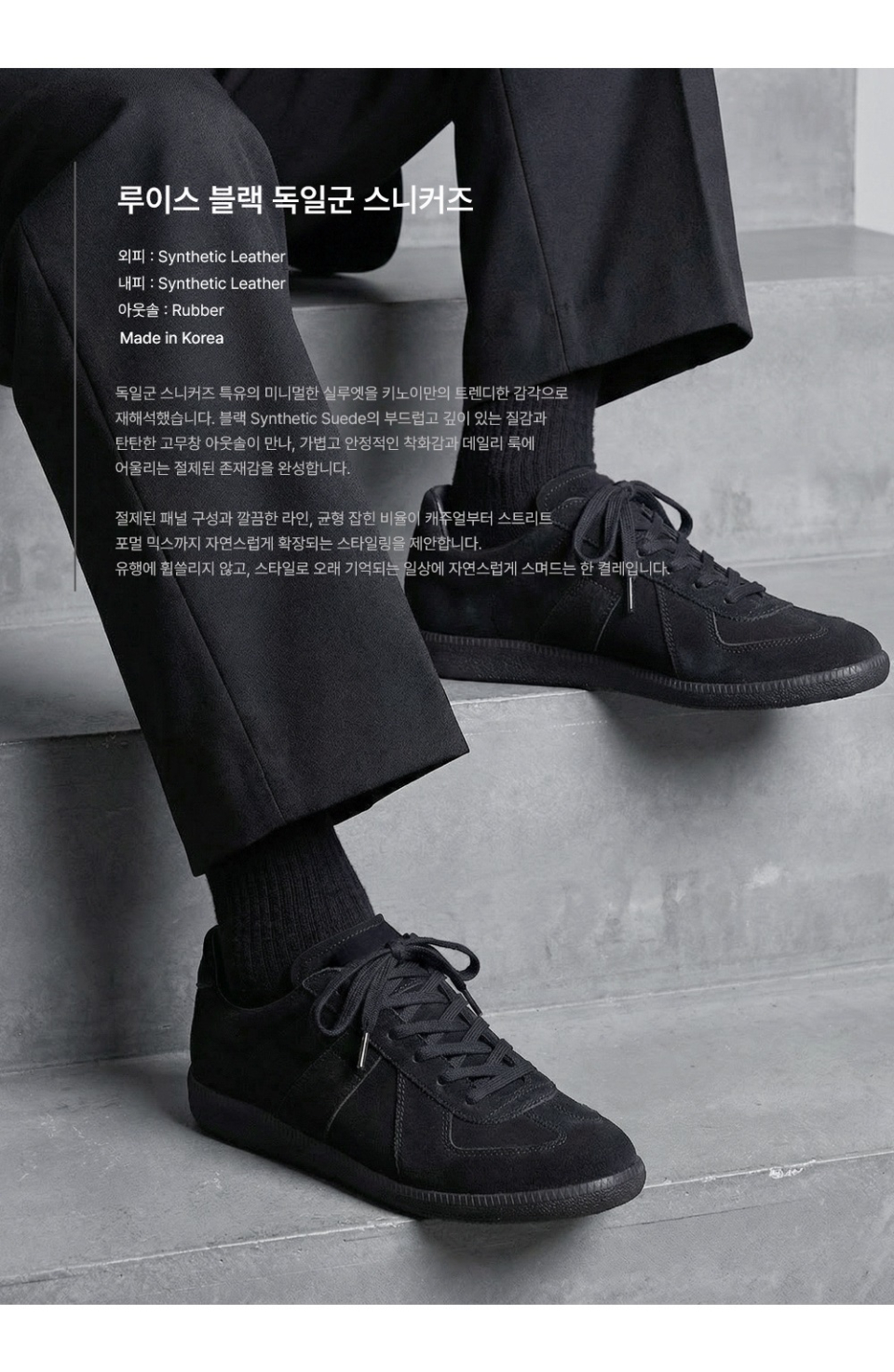 루이스 5.5cm 키높이 독일군 스니커즈 올블랙 [225~290mm]