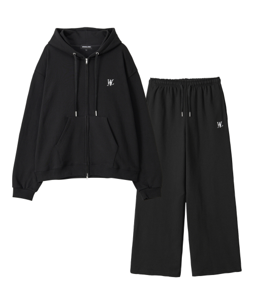 [SET] Signature hood zip-up & Signature relax wide pants - BLACK