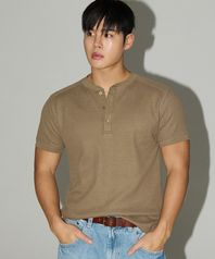 와플 헨리넥 머슬핏 반팔 티셔츠 카키