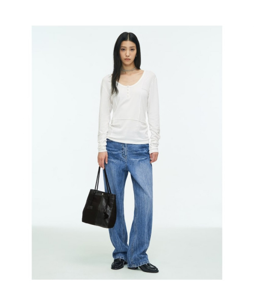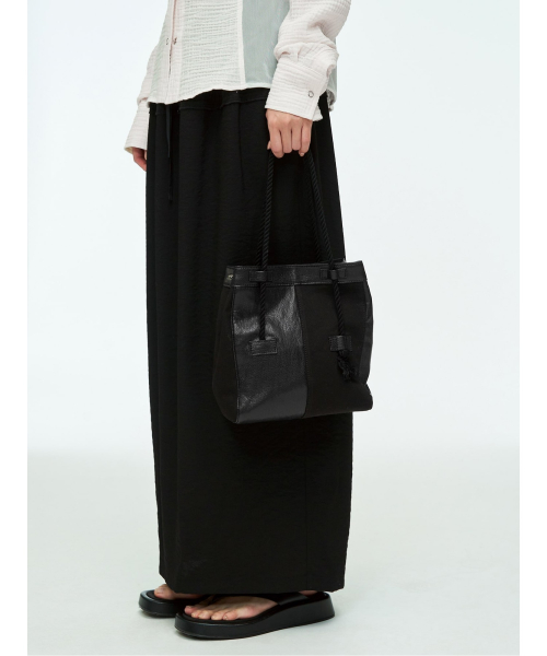 코튼 캔버스와 페이크 레더가 조합된 작은 사이즈의 토트백입니다. 끈으로 제작된 핸들과 간편하고 실용적인 크기로 편하게 들기 좋은 제품입니다. 간단한 소지품들과 작은 파우치 등을 수납할 수 있습니다.