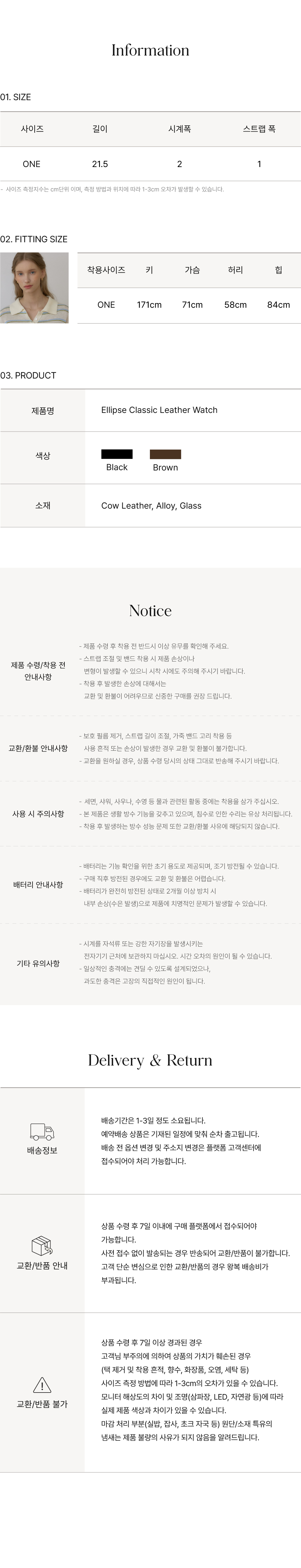일립스 클래식 레더 와치 - Black