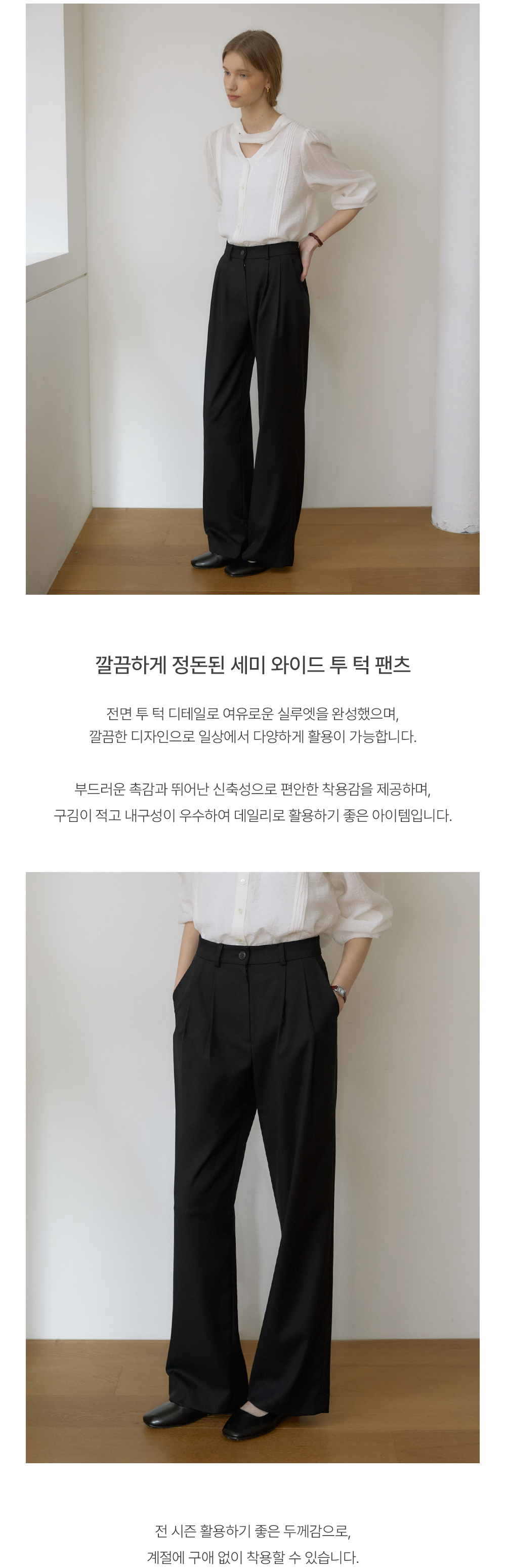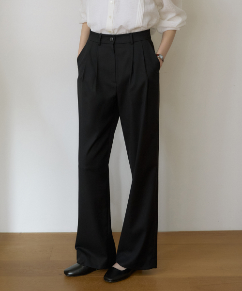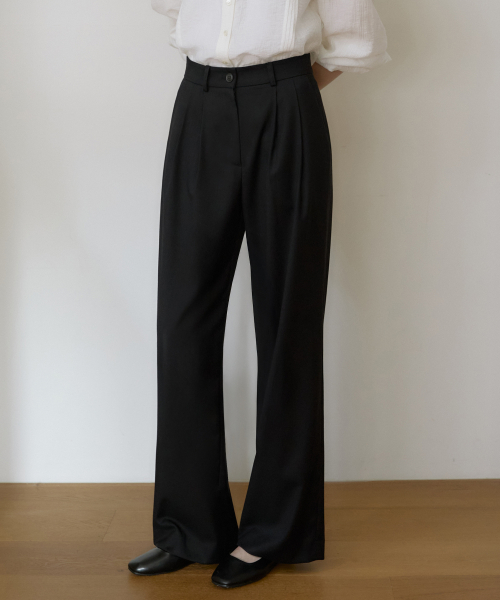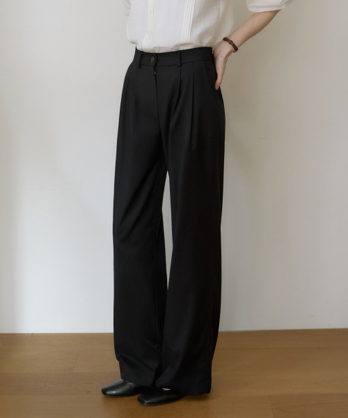 SPPT09 에센셜 투턱 와이드 슬랙스 - Black