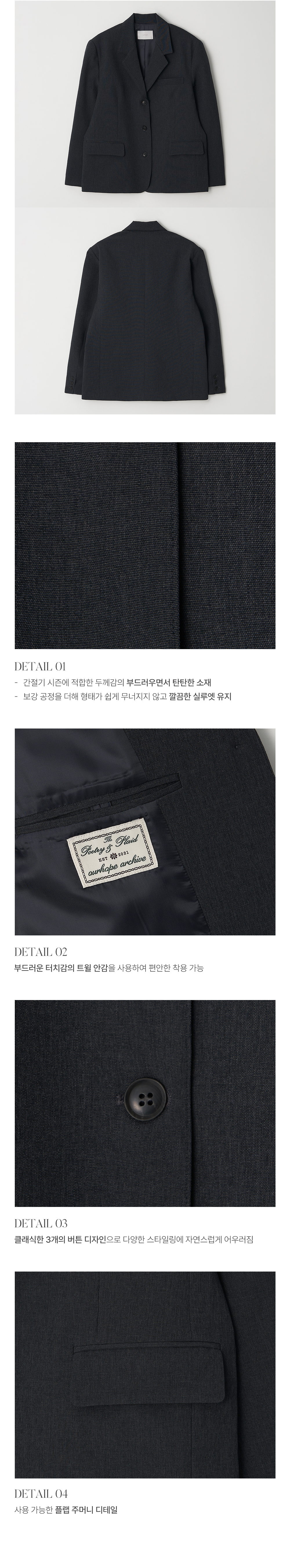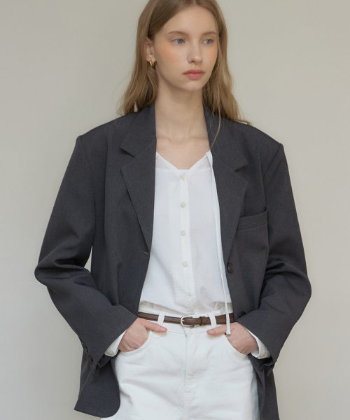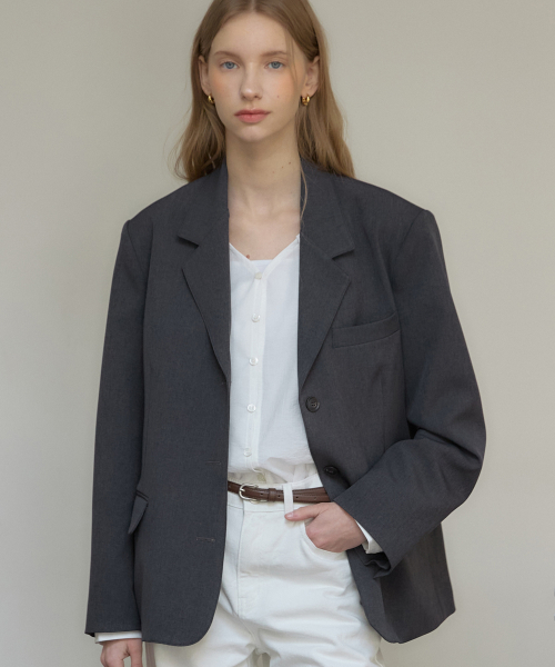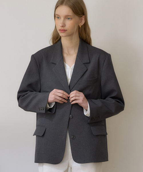 시그니처 싱글 버튼 자켓 - Charcoal