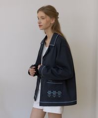 플로라 스티치 코튼 자켓 - Navy