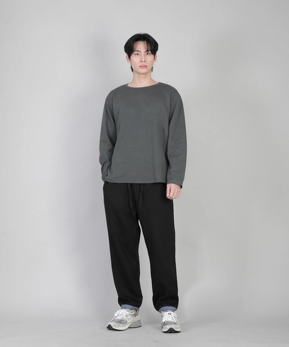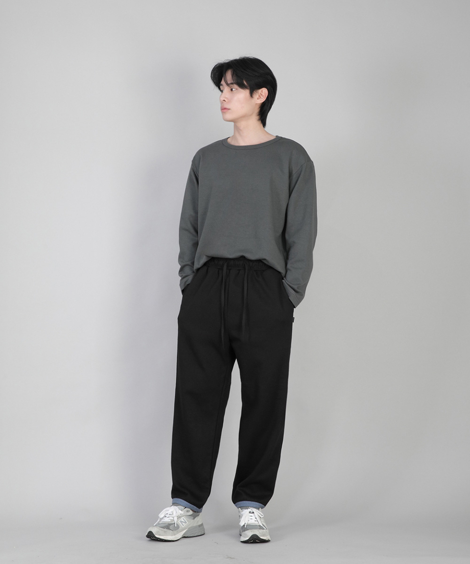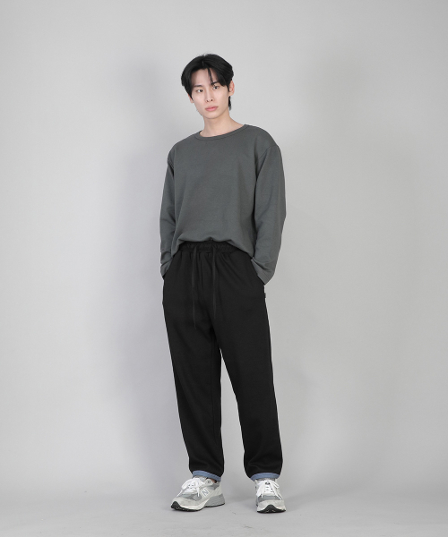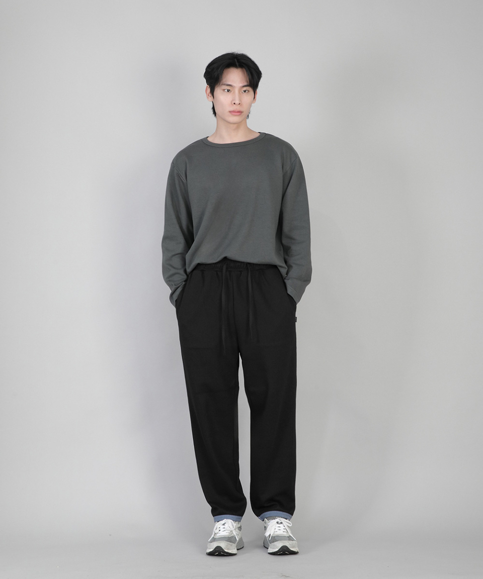 - 기모안감, 부드러운 촉감, 바지 밑단에 립원단으로 마감 포인트